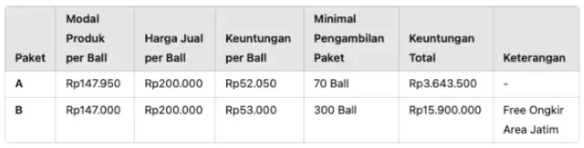 Dengan bergabung di Paket produk Ngemil'o. Anda bisa meraih keuntungan hingga Rp. 3.643.500 untuk Paket A dan RP. 15.900.000 untuk Paket B, Anda bisa hanya dengan modal awal Rp. 147.950 saja!